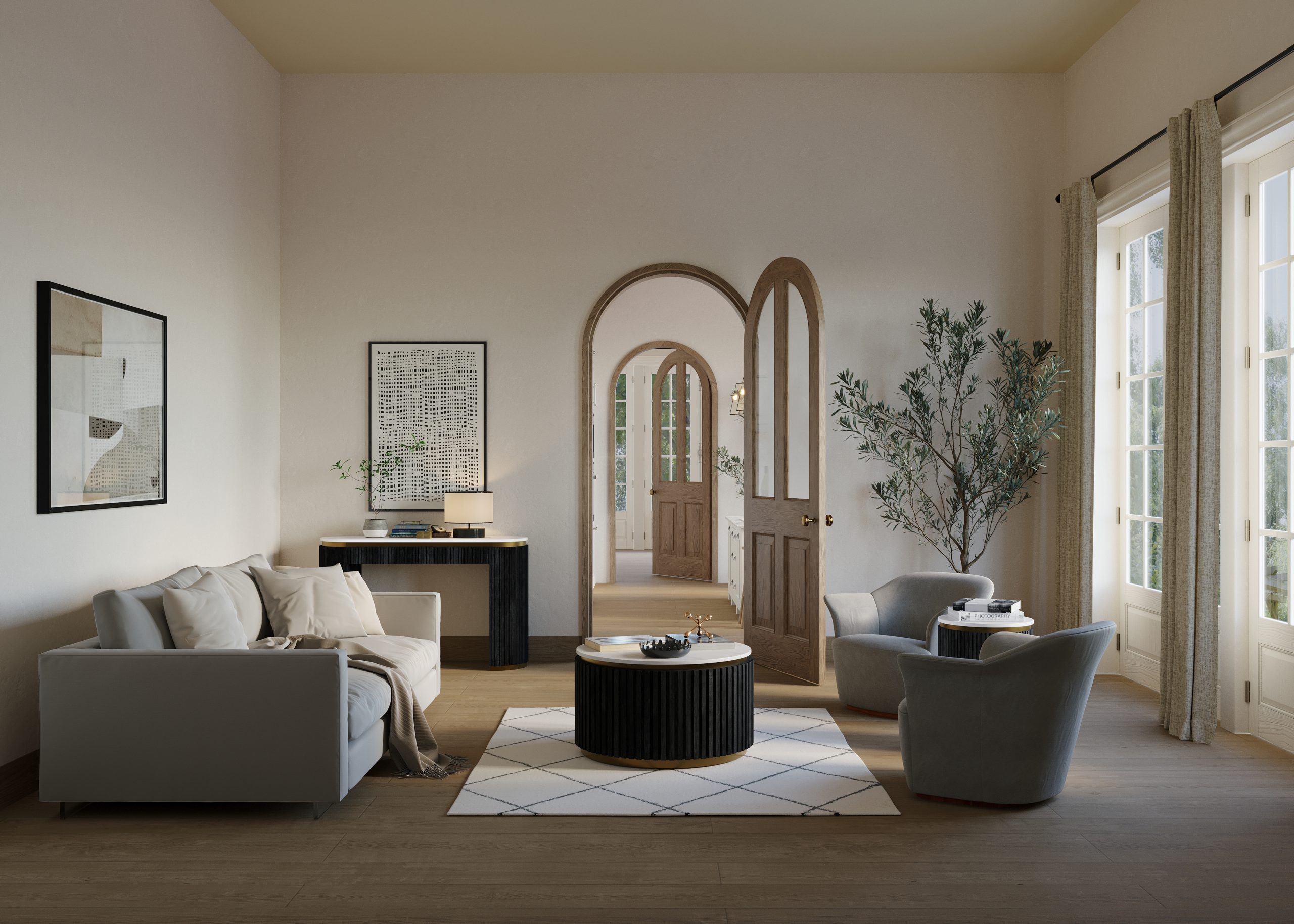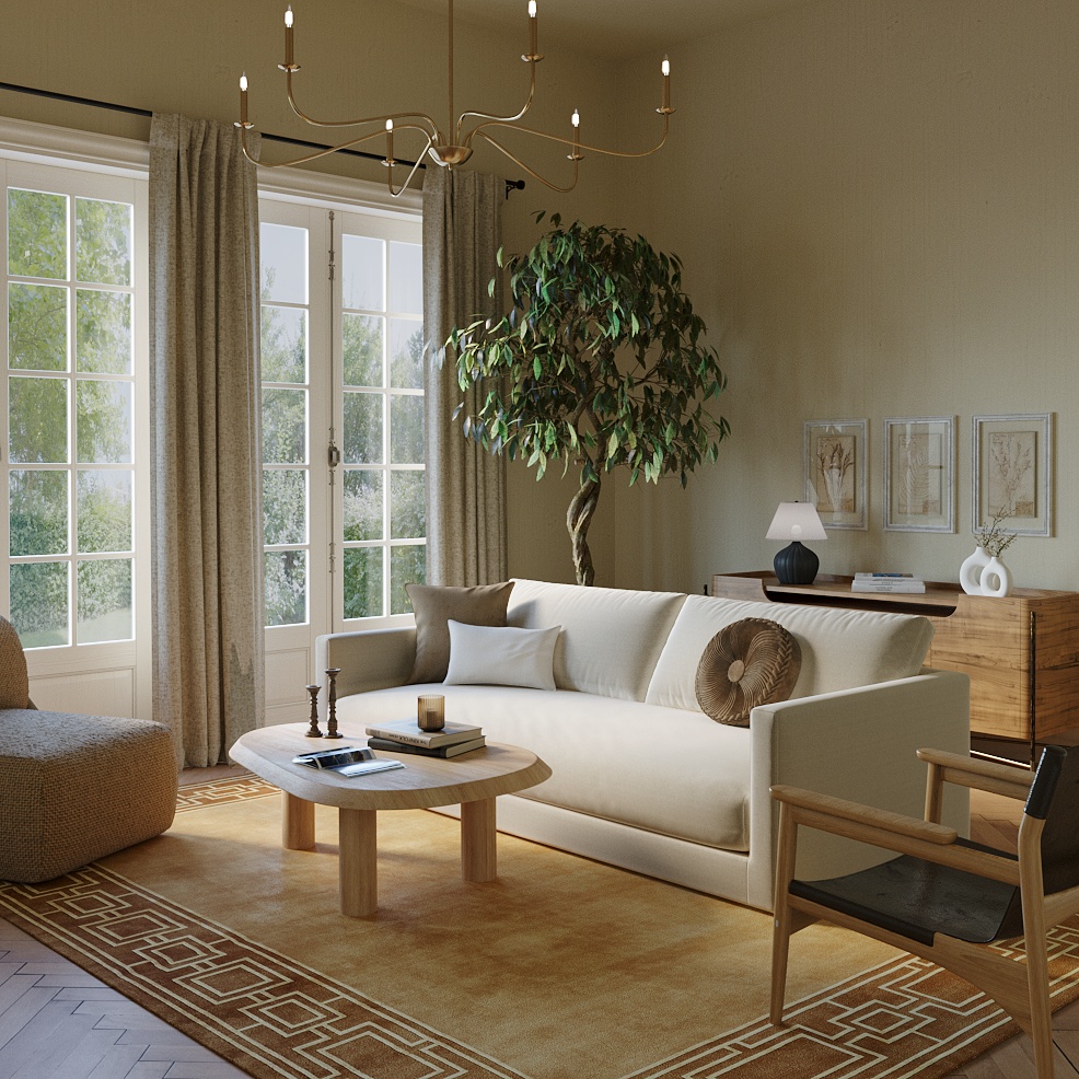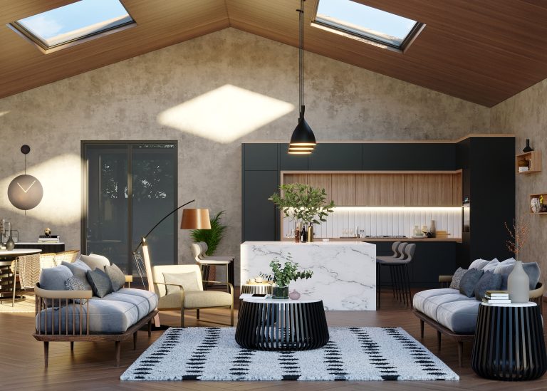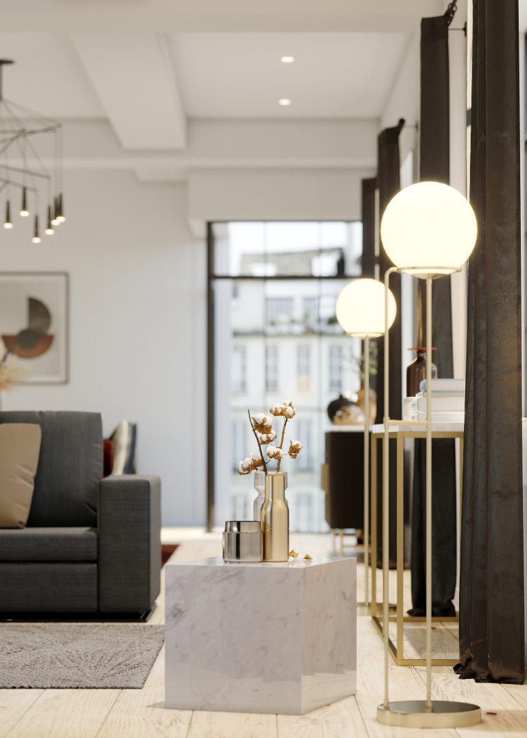 Come on in. Our 3D hyper-realistic CGI will help you showcase a complete display of any interior room or space using interior design rendering.